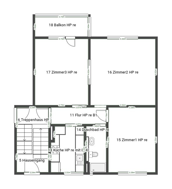 Die Wohnung ist auch für eine Wohngemeinschaft geeignet. Das Bad ist mit Wanne und Tageslichtfenster versehen, eine Einbauküche sowie Balkon ist auch vorhanden. Der Grundriss stammt aus dem Hochparterre, ist aber identisch.