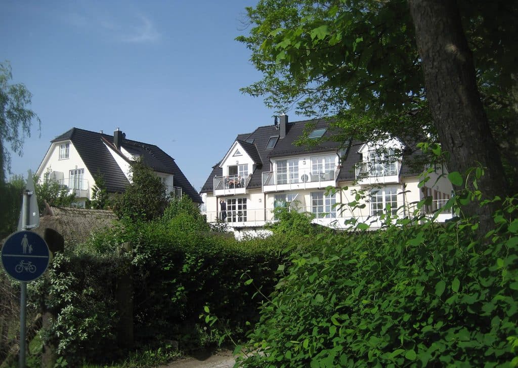 Die Eigentumswohnung befand sich in einem Neubauquartier mit drei Wohnhäusern auf einer durchgehenden Tiefgarage, in direkter Nähe zum Althäger Hafen. Die Hanglage mit freiem, unverbaubarem Blick über die Bootshäuser und den Saaler Bodden machte die Wohnung außergewöhnlich – aber auch erklärungsbedürftig. Wer den Ort nicht kennt, unterschätzt die Distanz zum Strand und überschätzt die Nähe zur offenen Ostsee. Tatsächlich liegt die Boddenküste in wenigen Gehminuten – der Ostseestrand ist rund zwei Kilometer entfernt. Diese Unterscheidung musste früh kommuniziert werden, um Enttäuschungen bei Besichtigungen zu vermeiden.