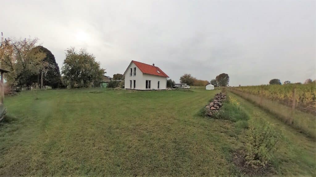Referenzobjekt aus unserer Praxis: ein Neubau-Einfamilienhaus im Rohbauzustand in Baumgarten, westlich des Landkreises Rostock am Rand des Naturparks Sternberger Seenland. Was ursprünglich als Altersruhesitz geplant war, musste aus gesundheitlichen Gründen vor der Ausbauphase veräußert werden – und wurde zur Chance für einen neuen Eigentümer, der das Haus nach eigenen Vorstellungen fertigstellt. Diese Referenz zeigt, wie man ein unvollendetes Objekt mit offenem Ausbauzustand klar und ehrlich positioniert. Diskrete Darstellung ohne Preis- und Adressdetails. Angaben ohne Gewähr.